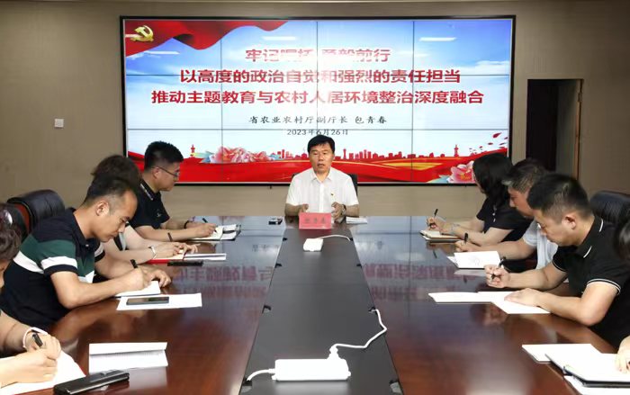 按照主题教育“学思想、强党性、重实践、建新功”的总要求,6月26日,厅党组成员、副厅长包青春以《牢记嘱托 勇毅前行 以高度的政治自觉和强烈的责任担当推动主题教育与农村人居环境整治深度融合》为题,结合全省农村人居环境整治工作实际,为分管处室和单位的党员干部讲授主题教育专题党课,并与大家交流心得体会。